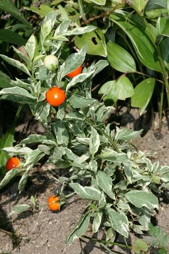 珊瑚の玉のように輝く冬珊瑚、スノーサンゴとも呼ばれているそうです。 筋の入った青い実がオレンジから赤へと変化するようで、見頃は真っ赤になる冬、これから、しばらく楽しませてくれるようです。 ワンコのテラ君と庭遊び中に見つけました。赤い玉、なん…