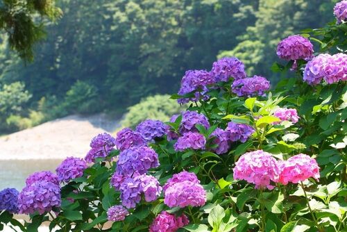 メイプルロードと言う名の散歩道、見事な紫陽花ロードに変身していました。同好会のみなさんの例会だそうです。集まってスケッチを楽しんで食事して、おしゃべりが楽しみって女性会員の方が話してくれました。 日本一とも言われる清流のそばの公園に約300本…